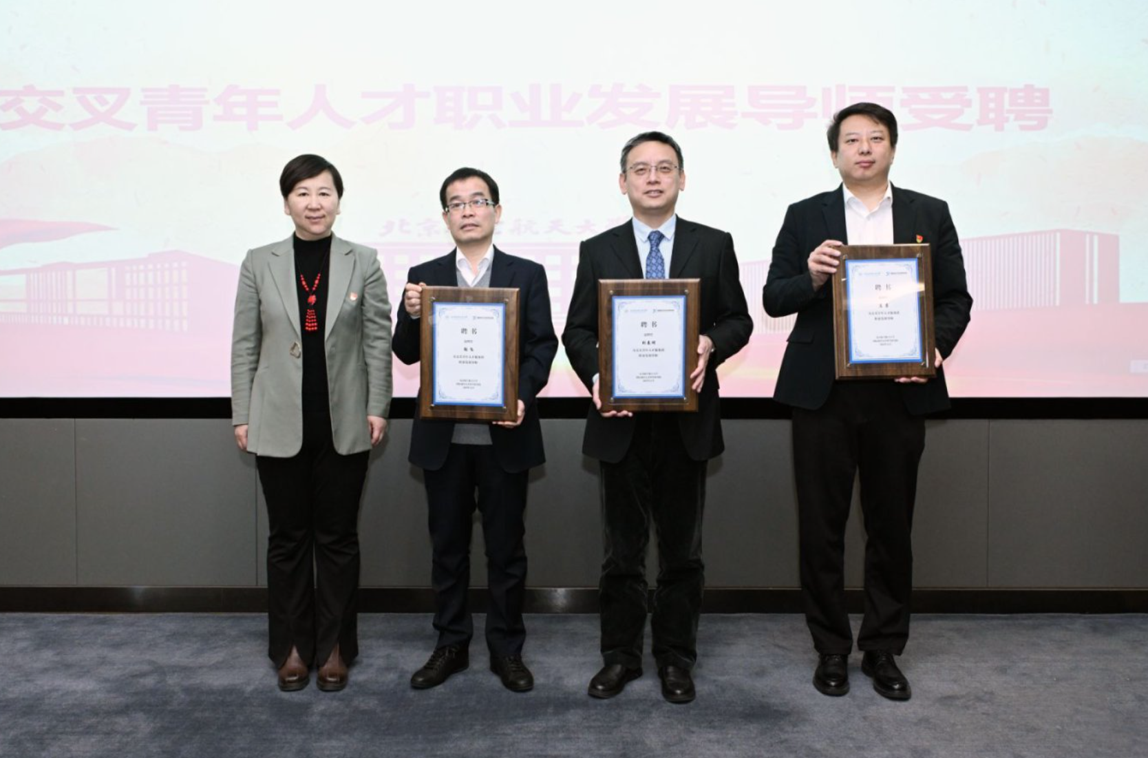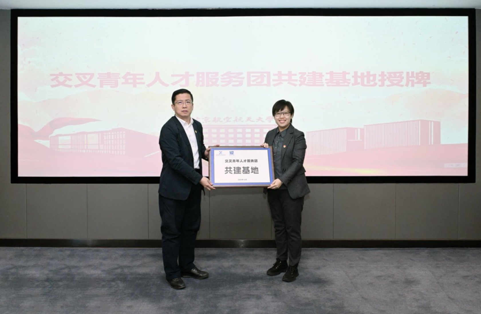 成立仪式在庄重热烈的氛围中拉开帷幕。国交院党委委员、原子制造中心主任潘曹峰汇报了《中共北京航空航天大学国际前沿交叉科学研究院委员会交叉青年人才服务团章程》,软件学院先进工业软件所所长葛宁、国交院原子制造中心主任潘曹峰分别就跨学科合作成果进行案例分享汇报。随后,闫晓军副校长为服务团授旗,张义主任为软件学院“交叉青年人才服务团共建基地”授牌,鲍蕊部长为三位“交叉青年人才职业发展导师”颁发聘书。