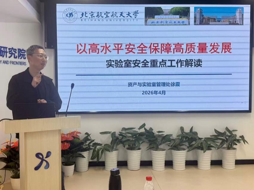 随后,北航资产与实验室管理处徐震副处长以“以高水平安全保障高质量发展”为题,聚焦北航实验室安全管理重点工作,详细解读学校实验室安全管理相关政策、规范要求与责任体系,明确实验室日常管理、设备使用、隐患排查等具体标准,推动参训人员严格遵守校内安全管理规定。