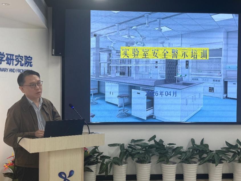 为进一步强化实验室安全管理,切实筑牢安全防线,2026 年 4 月 16 日下午,国际前沿交叉科学研究院在柏彦大厦6层报告厅举办实验室安全专题培训。国交院领导班子、实验室相关教师及学生参加培训。